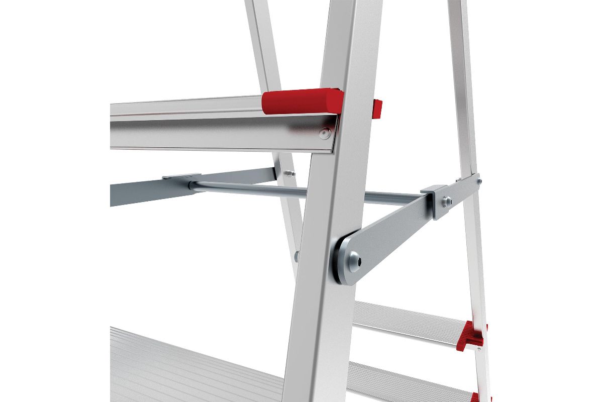 - Прочное крепление ступеней к боковинам 6 заклёпками придаёт конструкции высокую устойчивость;