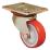 Колесо с поворотным кронштейном с контактным слоем (протектор из отлитого под давлением красного термопластичного полиуретана с отличным сопротивлением качению и высоким уровнем устойчивости к износу. Высокая механическая прочность достигнута путем нанесения цинкового слоя желтого цвета на сталь кронштейна. Цинк улучшает стойкость листа к механическим нагрузкам и абразивному износу. Высокая прочность достигнута за счет полностью монолитного корпуса из высококачественного нейлона (полиамида. В оси колеса установлен шариковый подшипник качения. Для бесперебойной работы внутри подшипника установлен сепаратор для удержания сферических тел на положенном месте. Обеспечивает легкость и плавность движения. В поворотном узле установлен двухрядный шариковый подшипник, отвечающий за маневренность в движении. Для продолжительной эксплуатации, в узле установлено защитной кольцо, которые препятствуют проникновению внутрь подшипника различных загрязнителей.